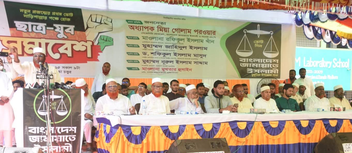 ‘তরুণ প্রজন্মের প্রথম ভোট দাঁড়িপাল্লার পক্ষে হোক’ এ স্লোগানকে সামনে রেখে অনুষ্ঠিত সমাবেশে এসময় বিশেষ অতিথির বক্তৃতায় বাংলাদেশ জামায়াতে ইসলামীর সহকারী সেক্রেটারি জেনারেল রফিকুল ইসলাম খান বলেন, জামায়াত দেশ শাসনের দায়িত্ব পেলে শুধু মুসলিম নয়, সকল ধর্মের মানুষ এমনকি নারীরাও সবচেয়ে মর্যাদাবান হবেন ইনশাআল্লাহ। এজন্য আগামী ফেব্রুয়ারির নির্বাচনে জামায়াতে ইসলামীর নেতৃত্বে ইসলামী মোর্চার প্রার্থীদের তিনি বিজয়ী করার আহবান জানান।