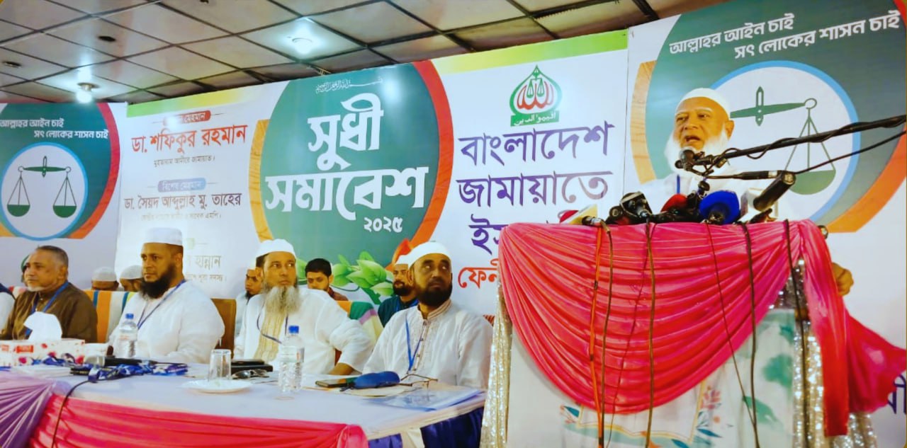 ৫ জুলাই শনিবার বিকালে ফেনী জেলা জামায়াতে ইসলামী উদ্যোগে জেলা আমীর মুফতি মাওলানা আবদুল হান্নান এর সভাপতিত্বে আয়োজিত সুধী সমাবেশে প্রধান অতিথির বক্তব্যে আমীরে জামায়াত এসব কথা বলেন। সমাবেশে বিশেষ অতিথি হিসেবে বক্তব্য রাখেন নায়েবে আমীর সাবেক এমপি ডা. সৈয়দ আব্দুল্লাহ মোঃ তাহের, সহকারী সেক্রেটারি জেনারেল মাওলানা এটিএম মা’ছুম প্রমুখ।