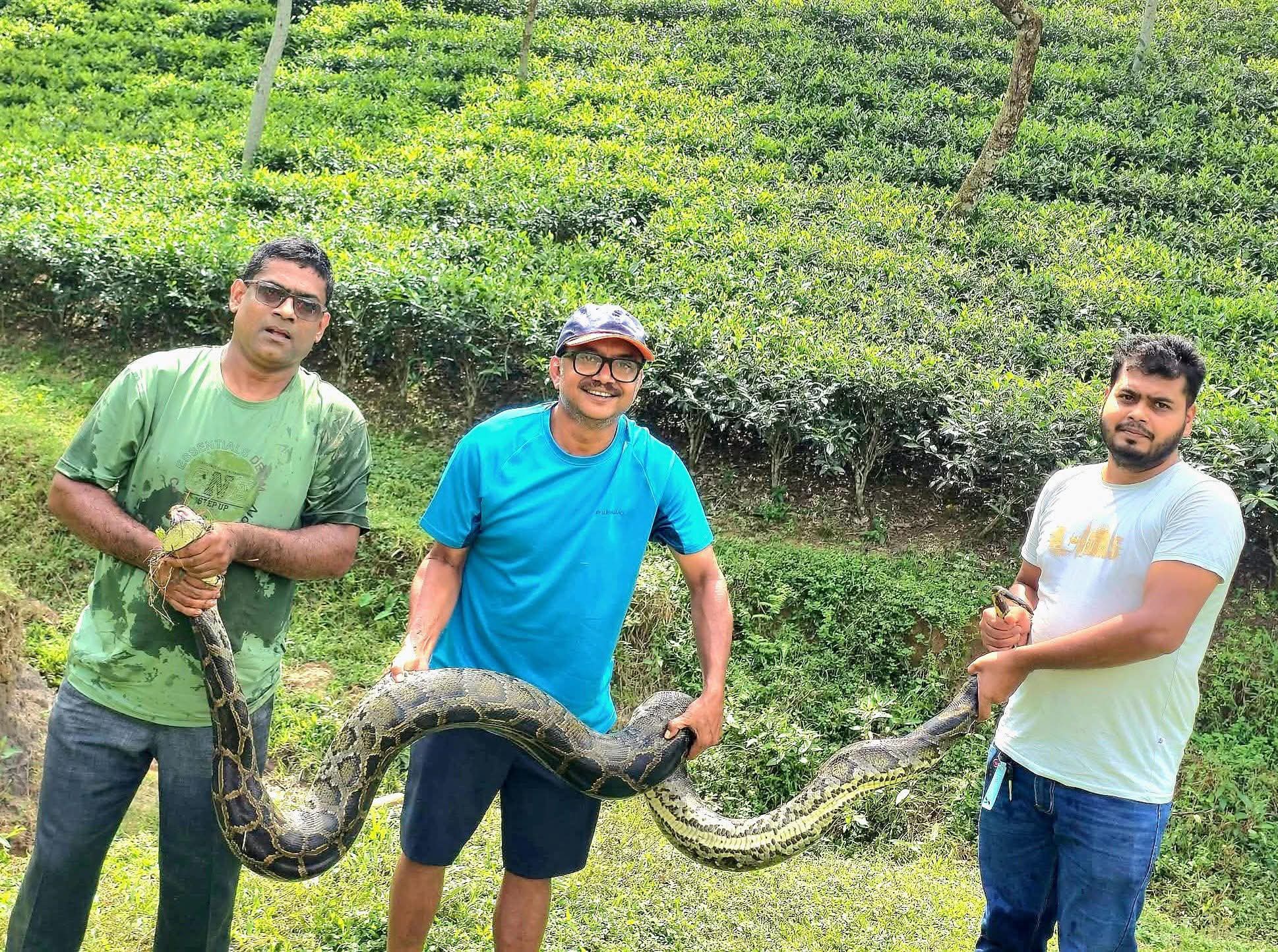 শ্রীমঙ্গলে চা বাগানে লেকের পাশ থেকেবিশাল আকৃতির অজগর সাপ উদ্ধার