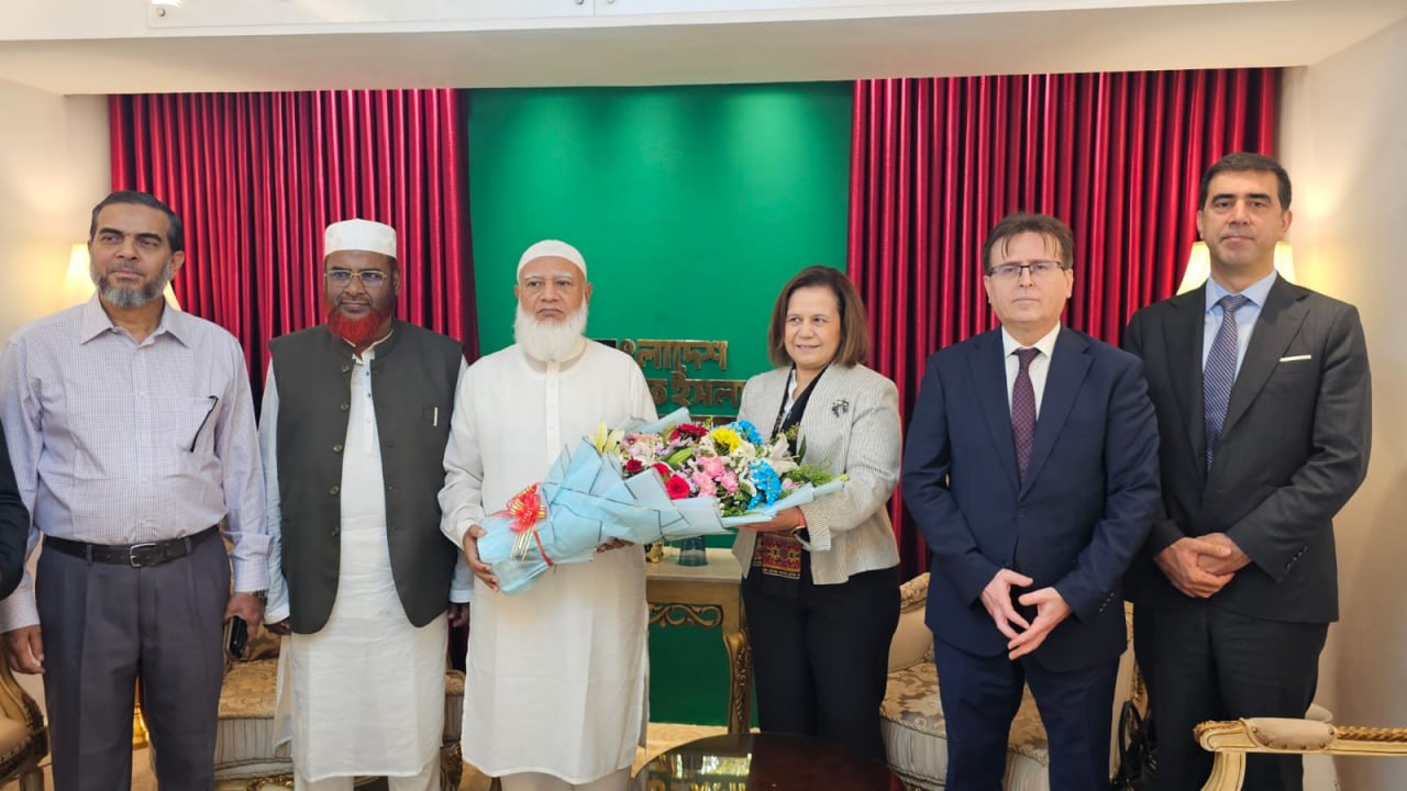 বাংলাদেশ জামায়াতে ইসলামীর আমীর ডা. শফিকুর রহমানের সঙ্গে ঢাকা সফররত তুরস্কের ফরেন অ্যাফেয়ার্স-এর ডেপুটি মিনিস্টার মান্যবর এ. বেরিস একিনজি-এর নেতৃত্বে তুরস্কের মান্যবর রাষ্ট্রদূত মি. রামিস সেনসহ ৪ সদস্যের উচ্চপর্যায়ের একটি প্রতিনিধি দল সৌজন্য সাক্ষাৎ করেছেন। আজ সোমবার (৬ অক্টোবর) বিকাল সাড়ে ৩টায় রাজধানীর বসুন্ধরাস্থ আমীরে জামায়াতের কার্যালয়ে এ সাক্ষাৎ অনুষ্ঠিত হয়। বৈঠকটি অত্যন্ত আন্তরিক ও সৌহার্দ্যপূর্ণ পরিবেশে অনুষ্ঠিত হয়।
