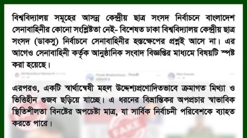 ডাকসু নির্বাচনের সাথে সেনাবাহিনীর কোন সংশ্লিষ্টতা নেই : সেনা সদরদপ্তর
