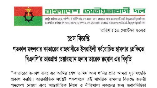 কাতারের রাজধানীতে ইসরাইলী বর্বরোচিত হামলার প্রেক্ষিতে তারেক রহমানের বিবৃতি