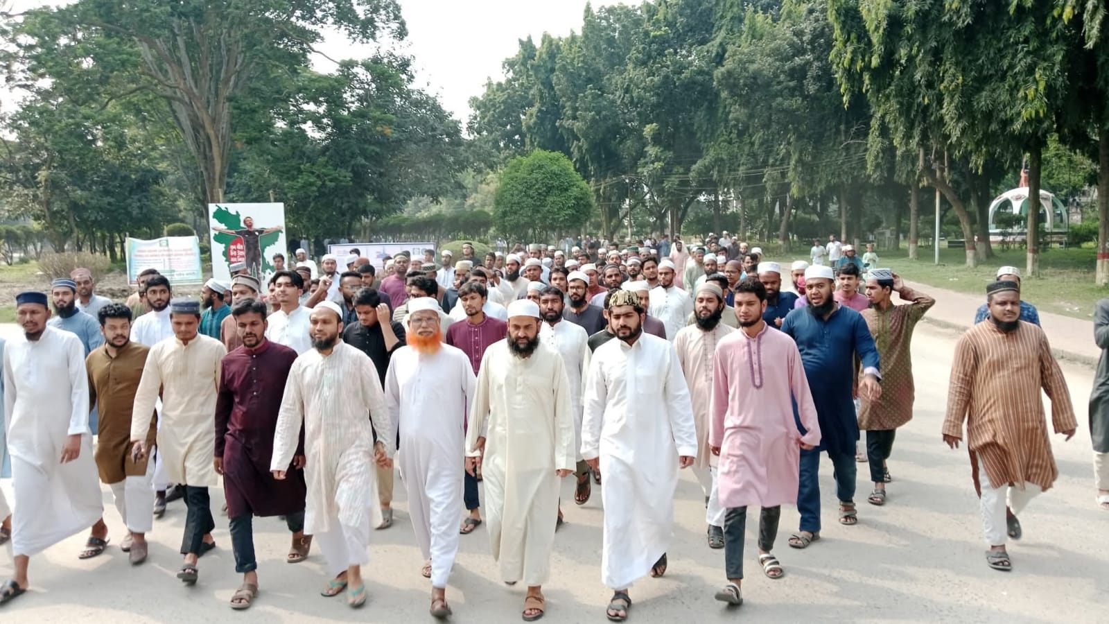 শুক্রবার (১৭ অক্টোবর) জুমার নামাজের পর বিশ্ববিদ্যালয়ের কেন্দ্রীয় মসজিদ চত্বর থেকে বিক্ষোভ মিছিল শুরু হয়ে প্রধান ফটকে গিয়ে শেষ হয়। পরে সেখানে এক সংক্ষিপ্ত সমাবেশ অনুষ্ঠিত হয়।