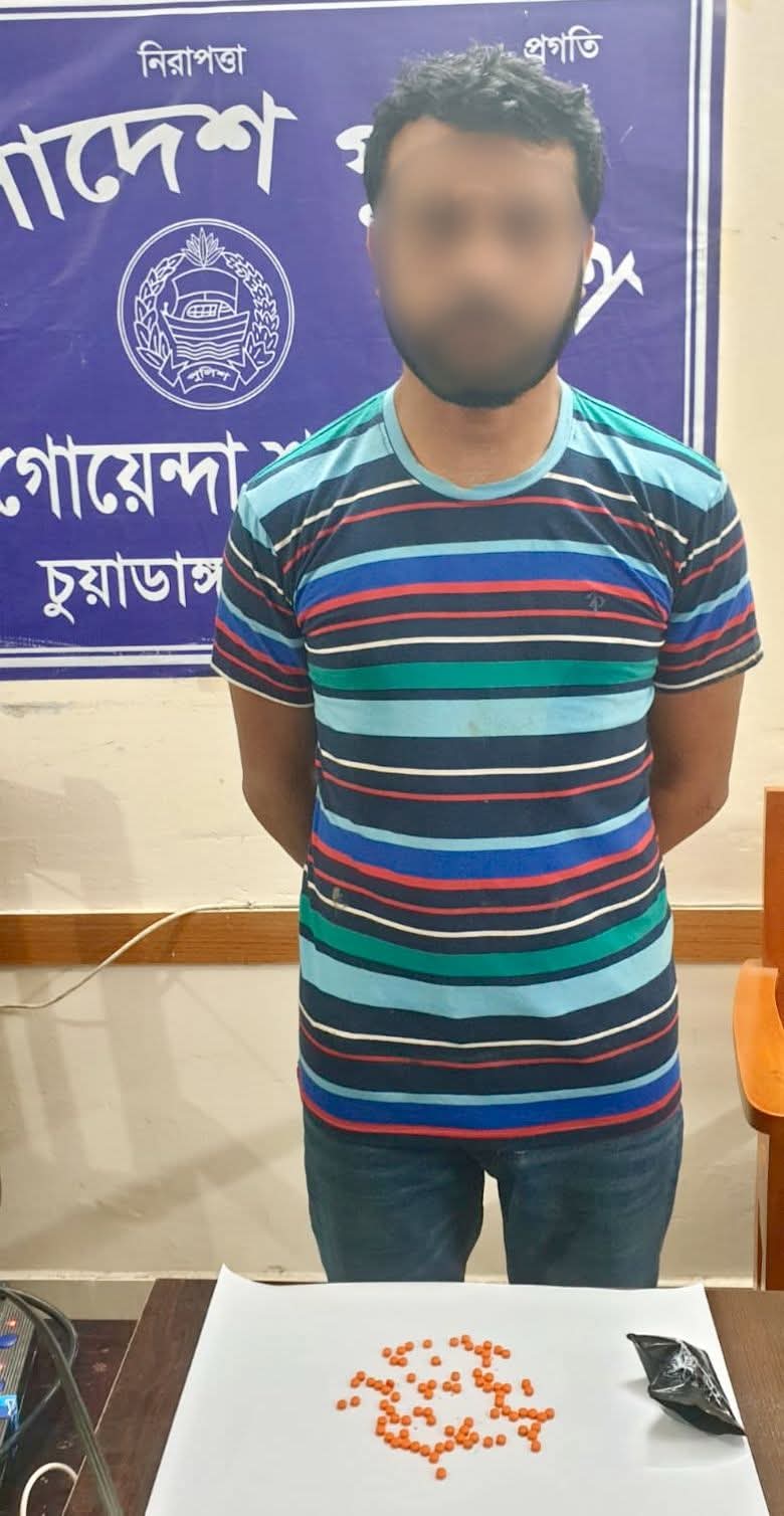চুয়াডাঙ্গা জেলা গোয়েন্দা শাখা (ডিবি) কর্তৃক মাদক বিরোধী অভিযানে ৮০(আশি) পিস অবৈধ মাদকদ্রব্য ইয়াবা ট্যাবলেট উদ্ধার। গ্রেফতার-০১(এক) জন।