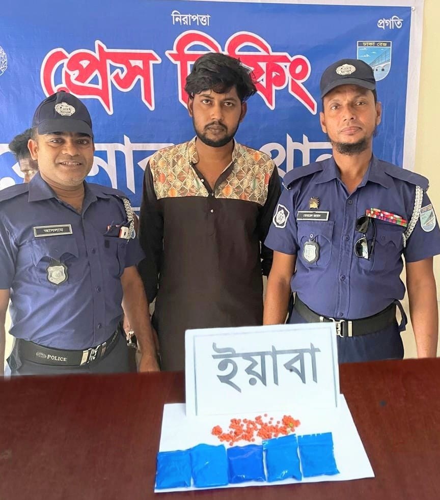 সোনারগাঁও থানার এসআই(নিঃ)/মোহাম্মদ ইকরাম উজ্জামান সংগীয় ফোর্সসহ সোনারগাঁও থানাধীন আষারঢ়িয়ারচর সাকিনস্থ মেঘনা টোল প্লাজার পশ্চিম পার্শ্বে ঢাকা-চট্রগ্রাম মহাসড়কের ঢাকাগামী মহাসড়কের পাশে পুলিশ চেকপোস্টের সামনে পাকা রাস্তার উপর অবৈধ মাদকদ্রব্য উদ্ধারের জন্য সন্দেহভাজন যানবাহন ও ব্যক্তিদের তল্লাশিকালে বিকাল ১৭.১০ ঘটিকার সময় কুমিল্লা দিক হতে “তিশা”নামীয় যাত্রীবাহী পরিবহন, যার রেজিঃ নং ঢাকা মেট্রো-ব-১৪-৮৬৭০ নামক বাসটি থামানোর সংকেত দিলে চালক বাসটি থামায়। অতঃপর উল্লিখিত অফিসার ও ফোর্স বর্ণিত বাসের ভিতরে উঠে সন্দেহ ভাজন ব্যক্তিদের নাম ঠিকানা জিজ্ঞাসাবাদে C-3 সিটে বসা ব্যক্তি তার সিট হতে উঠে কৌশলে গাড়ি হতে নামার চেষ্টা করলে সন্দেহ হওয়ায় তাকে জিজ্ঞাসাবাদে সে এলোমেলো কথা বলে। অতঃপর সংগীয় ফোর্সের সহায়তায় তাকে বাস হতে নিচে নামানো হয়। নিচে নামানোর পর উক্ত ব্যক্তি তার নাম নাঈম আহম্মেদ পলাশ (২৫), পিতা-মোঃ মনির হোসেন, মাতা-খুকু বেগম, সাং-রামসিদ্ধি মেল্লাপাড়া, পোঃ-বাঁশগ্রাম, ওয়ার্ড নং- ০৩, ১০নং ভদ্রবিলা ইউপি, থানা-সদর, জেলা-নড়াইল, বর্তমানে সাং-উত্তর গ্রাম পূর্বপাড়া(নানা মৃত আরব আলীর বাড়ী), পো- শংকচাইল বাজার, থানা-বুড়িচং, জেলা-কুমিল্লা বলে জানায়। এরপর তার শরীর তল্লাশি করার সময় তার নিজ হাতে তার পরিহিত প্যান্টের সামনের ডান পকেট হতে ১০০০ (এক হাজার) পিস ইয়াবা ট্যাবলেট বের করে দিলে উক্ত ইয়াবা ট্যাবলেট জব্দ তালিকা মূলে জব্দ করা হয়। ধৃত মাদক কারবারির বিরুদ্ধে সোনারগাঁও থানায় মাদকদ্রব্য নিয়ন্ত্রণ আইনে মামলা রুজু করে তাকে অদ্য ০৩/০৮/২৫ খ্রিঃ বিজ্ঞ আদালতে সোপর্দ করা হয়েছে।