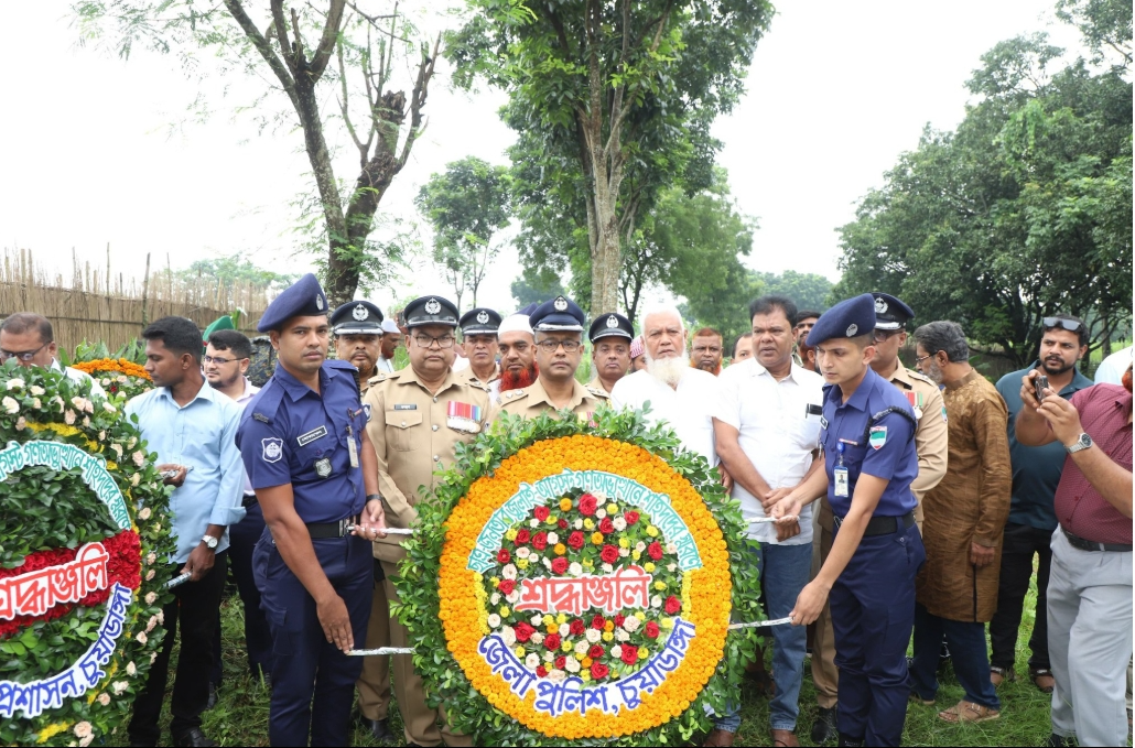 শ্রদ্ধাঞ্জলি অর্পণ করেন জনাব খন্দকার গোলাম মওলা, বিপিএম-সেবা, পুলিশ সুপার, চুয়াডাঙ্গা এবং জনাব কনক কুমার দাস, অতিরিক্ত পুলিশ সুপার (ক্রাইম অ্যান্ড অপস্), চুয়াডাঙ্গা। এসময় শহিদ পরিবারের সদস্যগণ ও জেলা পুলিশের অন্যান্য কর্মকর্তাবৃন্দ উপস্থিত ছিলেন।
