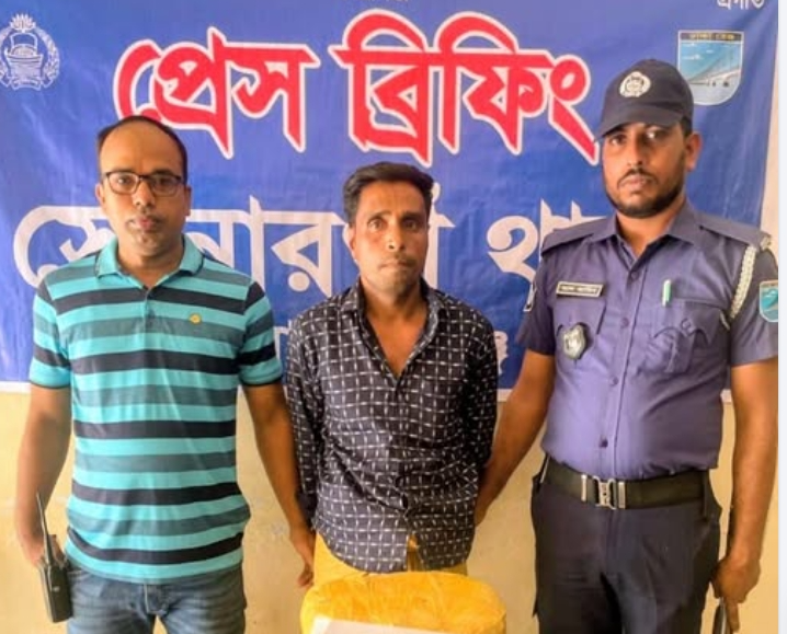 সোনারগাঁও থানার এসআই(নিঃ)/পংকজ কুমার আচার্য সোনারগাঁ থানাধীন আষারিয়ারচর সাকিনস্থ মেঘনা টোল প্লাজার পশ্চিম পার্শ্বে ঢাকা চট্টগ্রাম মহাসড়কের ঢাকাগামী রোডের পুলিশ চেকপোস্টের সামনে ঢাকাগামী মহাসড়কের উপর উপর চেকপোস্ট-০৭ (নাইট) ডিউটি করা কালে মাদকদ্রব্য উদ্ধারের লক্ষে বিভিন্ন প্রকার সন্দেহভাজন যানবাহন তল্লাশি কালে ১১/০৮/২০২৫ তারিখ দিবাগত রাত ০১.৩০ ঘটিকার সময় কুমিল্লা দিক হতে ঢাকাগামী “সিডিএম” পরিবহন নং-চট্ট মেট্রো-ব-১৪-৮৭৪ বাসটি সোনারগাঁও থানাধীন আষারিয়ারচর সাকিনস্থ মেঘনা টোল প্লাজার পশ্চিম পার্শ্বে ঢাকা চট্টগ্রাম মহাসড়কের ঢাকাগামী রোডের পুলিশ চেকপোস্টের সামনে পাকা রাস্তার উপর আসলে বাসটি থামানোর সংকেত দিলে চালক বাসটি থামায়। চালক বাসটি থামানোর সাথে সাথে উক্ত বাস হতে একজন ব্যক্তি একটি প্লাস্টিকের বাজারের ব্যাগসহ নেমে কৌশলে পালানোর চেষ্টা করলে সংগীয় ফোর্সের সহায়তায় তাকে আটক করে। আটককৃত উক্ত ব্যক্তিকে জিজ্ঞাসাবাদে তিনি তার নাম ঠিকানা (১) জুরান আলী (৪০), পিতা-রাজু, মাতা-জরিনা, সাং-রামপুর চৈতিলা, ইউপি- নগদা শিমলা, থানা-গোপালপুর, জেলা-টাঙ্গাইল বলে জানায়। অতঃপর আটককৃত জুরান আলী (৪০) আসামীর ডান হাতে থাকা ০১(এক)টি প্লাস্টিকের বাজারের ব্যাগ তল্লাশি করে উক্ত বাজারের ব্যাগের ভিতর থেকে ০৪ (চার) কেজি গাঁজা উদ্ধার পূর্বক জব্দ তালিকা মূলে জব্দ করা হয়। ধৃত মাদক কারবারির বিরুদ্ধে সোনারগাঁও থানায় মাদকদ্রব্য নিয়ন্ত্রণ আইনে নিয়মিত মামলা রুজু করে তাকে অদ্য বিজ্ঞ আদালতে সোপর্দ করা হয়েছে।