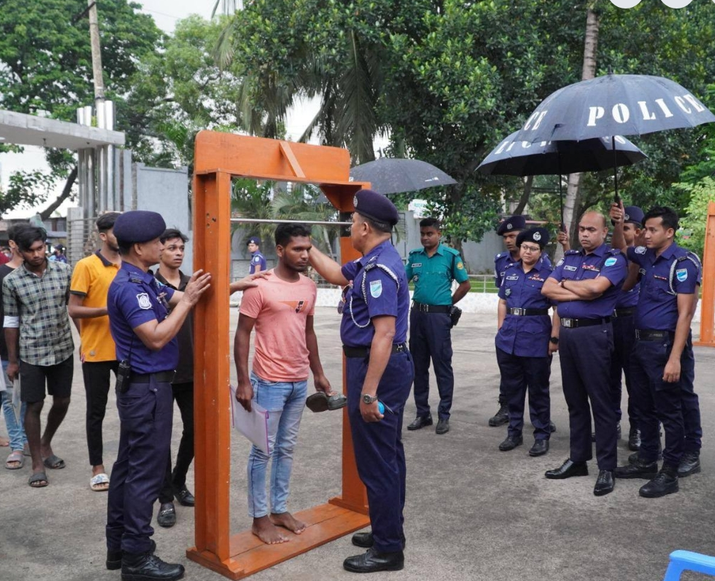 নারায়ণগঞ্জ জেলা পুলিশ লাইন্স মাঠে “ট্রেইনি রিক্রুট কনস্টেবল পদে নিয়োগ জুন-২০২৫” এর বাছাই প্রক্রিয়া (শারীরিক মাপ ও Physical Endurance Test) শুরু হয়েছে। অত্র জেলার সুযোগ্য পুলিশ সুপার জনাব প্রত্যুষ কুমার মজুমদার মহোদয়ের নেতৃত্বে আজ ১৭ আগস্ট ২০২৫ খ্রি. (রবিবার) সকাল থেকে এ প্রক্রিয়া শুরু হয়। তিন দিন ব্যাপী বাছাই কার্যক্রমের আজ প্রথম দিন। আজকে প্রার্থীদের উচ্চতা, ওজন এবং বুকের মাপ যাচাই করা হয়। পুলিশ সুপার জনাব প্রত্যুষ কুমার মজুমদার মহোদয় আজকের দিনের প্রাথমিক ভাবে বাছাইকৃত যোগ্য প্রার্থীদের নারায়ণগঞ্জ জেলা পুলিশের পক্ষ থেকে শুভেচ্ছা ও অভিনন্দন জানান। পুলিশ সুপার মহোদয় তাঁর বক্তব্যে আর্থিক লেনদেন এবং দালাল চক্রের সাথে যোগাযোগ থেকে বিরত থাকার ব্যাপারে সতর্ক করেন । তিনি আরোও বলেন, শতভাগ স্বচ্ছতার সাথে শুধুমাত্র মেধা ও যোগ্যতার ভিত্তিতে যোগ্য প্রার্থীকেই নির্বাচিত করা হবে এবং চূড়ান্তভাবে বাংলাদেশ পুলিশের কনস্টেবল পদের জন্য নিয়োগ প্রদান করা হবে। নারায়ণগঞ্জ জেলা পুলিশ একটি স্বচ্ছ নিয়োগ উপহার দিতে অঙ্গীকারবদ্ধ বলে জানান পুলিশ সুপার, নারায়ণগঞ্জ মহোদয় ।