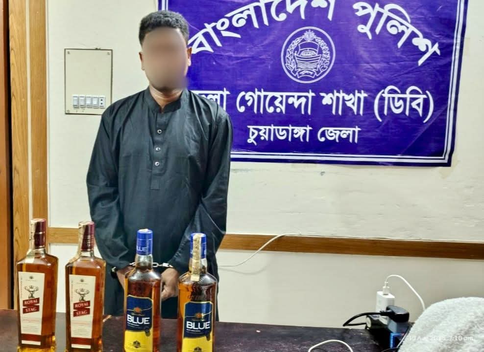 চুয়াডাঙ্গা জেলার সুযোগ্য পুলিশ সুপার জনাব খন্দকার গোলাম মওলা, বিপিএম-সেবা মহোদয়ের সার্বিক দিকনির্দেশনায় জেলা পুলিশের সকল ইউনিটে একযোগে মাদক ও চোরাচালান বিরোধী অভিযান পরিচালিত হচ্ছে। তারই ধারাবাহিকতায় জেলা গোয়েন্দা শাখা (ডিবি) কর্তৃক মাদক বিরোধী বিশেষ অভিযানে এসআই(নিঃ) সৌমিত্র সাহা, এএসআই(নিঃ) মোঃ আবু আল ইমরান, সকলেই জেলা গোয়েন্দা শাখা, চুয়াডাঙ্গা সঙ্গীয় অফিসার ও ফোর্সসহ আজ ৩০ আগস্ট ২০২৫ তারিখ বিকাল ১৬:৪৫ ঘটিকায় চুয়াডাঙ্গা সদর থানাধীন হাট কালুগঞ্জ সাকিনস্থ পুলিশ লাইন্স প্রাথমিক বিদ্যালয় গেটের সামনে পাঁকা রাস্তার উপর হতে আসামী ১। মহম্মদ মহাবুল মন্ডল (৩৮), পিতা- মৃত মোজাহার মন্ডল, মাতা- আনোয়ারা বেওয়া, সাং-চকরামপ্রসাদ, পোস্ট-হরেকৃঞ্চপুর, থানা- সাগরপাড়া, জেলা-মুর্শিদাবাদ(ওয়েস্ট বেঙ্গল ৭৪২৩০৫) দেশ-ভারত এর হেফাজত হতে অবৈধ মাদকদ্রব্য ০৪ (চার) বোতল ভারতীয় মদ পেয়ে আসামীকে গ্রেফতার পূর্বক অবৈধ মাদকদ্রব্য ভারতীয় মদ জব্দ করা হয়।