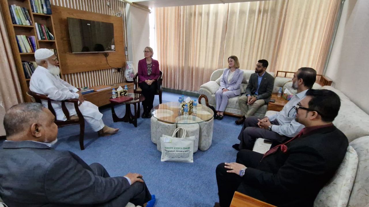 ১০ সেপ্টেম্বর (বুধবার) বেলা ১১টায় বাংলাদেশ জামায়াতে ইসলামীর আমীর ডা. শফিকুর রহমানের সঙ্গে বসুন্ধরায় তার কার্যালয়ে বাংলাদেশে নিযুক্ত মান্যবর ব্রিটিশ হাইকমিশনার মিসেস সারাহ কুক এক সৌজন্য সাক্ষাৎ করেন ও মতবিনিময় করেন। এ সময় তিনি আমীরে জামায়াতের স্বাস্থ্যের খোঁজ নেন এবং তাঁর পরিপূর্ণ সুস্থতা কামনা করেন। তাঁর সঙ্গে ছিলেন হাইকমিশনের সেকেন্ড সেক্রেটারি মিস. কেট ওয়ার্ড। সাক্ষাৎকারটি অত্যন্ত হৃদ্যতাপূর্ণ পরিবেশে অনুষ্ঠিত হয়।